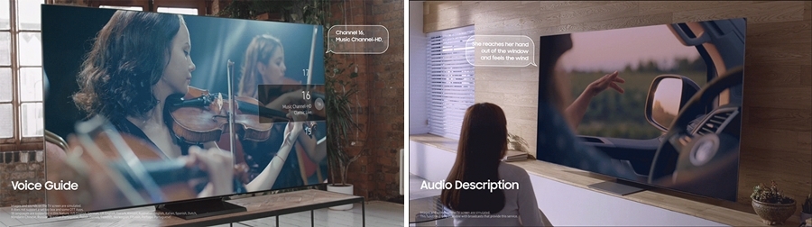 ซัมซุงพัฒนาฟีเจอร์ Voice Guide เพื่อช่วยในการเลือกรายการที่ต้องการเมื่อเปิดทีวี โดยฟีเจอร์สามารถบอกรายละเอียดรายการ หมายเลขช่อง และระดับความดังของเสียงให้กับผู้ใช้ ทำให้ลดภาระการจดจำปุ่มมากมายบนรีโมท นอกจากนี้ยังมีฟีเจอร์ Audio (Video) Description ที่บรรยายสถานการณ์และฉากบนจอภาพ ซึ่งรวมถึงเสื้อผ้าที่ตัวละครสวมใส่และท่าทางต่างๆ เพื่อรายละเอียดที่สมบูรณ์มากขึ้น