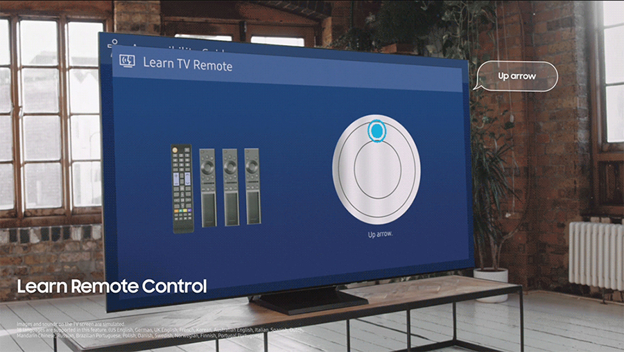 ฟีเจอร์ Learn TV Remote ถูกออกแบบมาเพื่อช่วยให้ผู้ใช้คุ้นเคยกับตำแหน่งของปุ่มต่างๆ และช่วยสอนฟังก์ชันในการใช้งาน โดยขณะเปิดฟีเจอร์อยู่ ระบบจะอธิบายรายละเอียดของปุ่มต่างๆ เป็นข้อความเสียงทุกครั้งที่พูดใช้กดรีโมท นอกจากนี้ซัมซุงทีวี Neo QLED และ The Frame ตั้งแต่รุ่น 2021 เป็นต้นไป ยังมาพร้อมกับรีโมทควบคุมโซลาเซลล์ (Solar Cell Remote Control) ที่สามารถชาร์จพลังงานได้จากแสงภายในและภายนอกอาคาร ช่วยให้ผู้ใช้ไม่จำเป็นต้องเปลี่ยนถ่านรีโมทอยู่บ่อยๆ