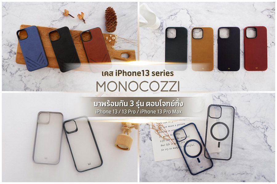 บริษัท อาร์ทีบี เทคโนโลยี จำกัด ผู้นำเข้าและจัดจำหน่ายสินค้า Gadget รายใหญ่ในประเทศไทย เปิดตัวเคสสำหรับ iPhone 13 ภายใต้แบรนด์ Monocozzi พร้อมกันถึง 4 รุ่น ได้แก่ LUCID Shockproof Polycarbonate&TPU Hybrid Bumper, MOTIF Magsafe Compatible SnapOn Shockproof Hybrid Case, POSH Shockproof Vegan Leather Hybrid Case และ EXQUISITE Magsafe Compatible SnapOn Genuine Leather Protective Case โดดเด่นด้วยดีไซน์ที่ทันสมัย เน้นความแข็งแรงทนทาน รองรับแรงกระแทกรอบด้านได้อย่างดีเยี่ยม ตัวเคสด้านข้างมีลักษณะเป็น Bumper ที่ช่วยป้องกันแรงกระแทกรอบด้านได้อย่างนุ่มนวล และด้านหลังบริเวณมุมจะมีขอบสูงกว่าเลนส์กล้อง 1 มิลลิเมตร เพื่อปกป้องเลนส์กล้องจากรอยขูดขีดเมื่อเวลาวางและที่สำคัญ เมื่อใส่เคสเข้ากับ iPhone 13 สามารถใช้งานร่วมกับ Apple Play ได้อีกด้วย