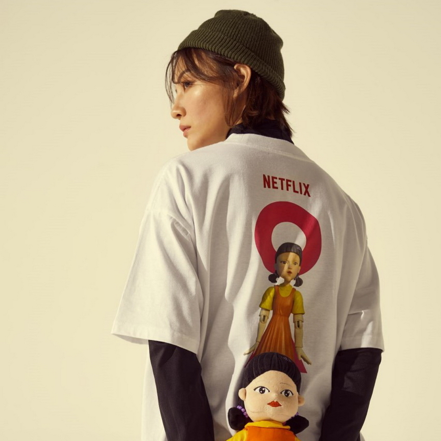 ไฮไลต์สุดโดดเด่นในคอลเลกชันนี้คือเสื้อยืดที่หยิบเอาคอนเซ็ปต์ Netflix and Ramyeon ที่มีนัยของ Netflix and Chill ในวัฒนธรรมร่วมสมัยของเกาหลี มาผสานกับกิมมิคการคืนชีพจากซีรีส์ ผีดิบคลั่ง บัลลังก์เดือด (Kingdom) นอกจากนี้ยังเป็นโอกาสให้แฟนๆ ของ Netflix ได้ลองสวมใส่เสื้อผ้าที่ได้แรงบันดาลใจจากเสื้อผ้าของทหารจากกองทัพเกาหลีใต้ในซีรีส์ D.P. หน่วยล่าทหารหนีทัพ (D.P.) รวมทั้งไอเทมสุดฮิตจากซีรีส์ สควิดเกม เล่นลุ้นตาย (Squid Game) ที่ตอนนี้รับรองว่าไม่มีใครที่ไม่รู้จัก ไม่ว่าจะเป็นตุ๊กตาเด็กหญิงสุดหลอนในเกม ‘เออีไอโอยู’ และพิเศษสุดๆ กับเสื้อยืดสกรีนหมายเลข 001 ถึง 456 ที่ได้แรงบันดาลใจมาจากยูนิฟอร์มผู้เข้าแข่งขัน “สควิดเกม” ที่มีจำกัดเพียง 456 ตัว และจะเป็นการจำหน่ายในรูปแบบของการสุ่มหมายเลขบนเสื้อเท่านั้น! เรียกว่าทุกไอเทมคัดสรรมาแล้วว่าเห็นปุ๊บก็รู้ปั๊บว่านี่แหละคนอินซีรีส์ของแท้!