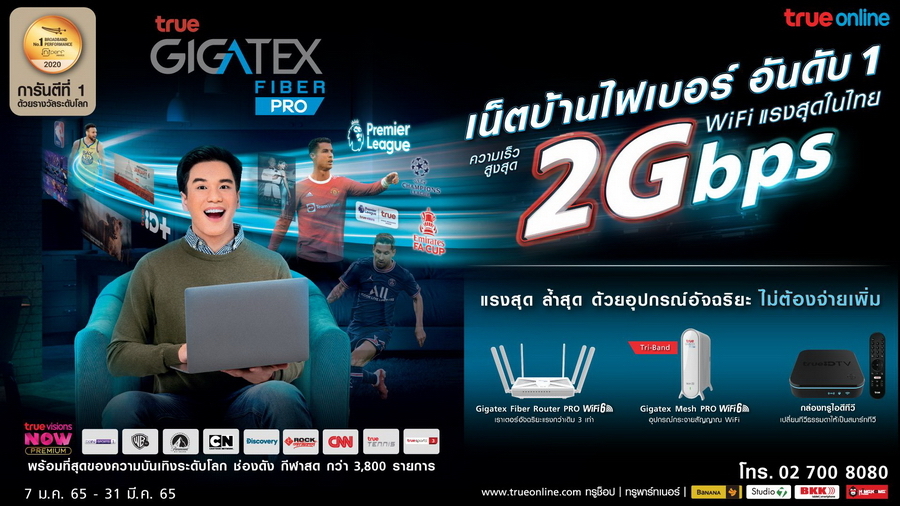 ทรูออนไลน์ ย้ำผู้นำเน็ตบ้านไฟเบอร์ อันดับ 1 การันตีโดยรางวัลจาก nPerf ต่อยอดความเร็ว แรง อินเทอร์เน็ตระดับ 10 Gbps ที่เปิดให้บริการแก่ลูกค้าองค์กรมาอย่างยาวนาน ล่าสุด จัดหนัก จัดเต็ม ให้ลูกค้าบุคคล ได้สัมผัสประสบการณ์ใหม่ของการใช้ชีวิตยุคดิจิทัล ที่ดีกว่า เหนือกว่า ได้มากกว่า ด้วย “ทรู กิกะเทค ไฟเบอร์ 2 Gbps” ที่ปล่อยสัญญาณ WiFi แรงสุดในไทย คุ้มสุด ล้ำสุด ฟรี! ครบเซ็ท กับอุปกรณ์อัจฉริยะ True Gigatex Fiber Router PRO WiFi 6 ให้อัปสปีดเน็ต ไหลลื่น แรงสะใจขึ้นถึง 3 เท่า True Gigatex Mesh PRO WiFi 6 อุปกรณ์เสริมกระจายสัญญาณ ให้ครอบคลุมทั่วบ้าน และกล่อง ทรูไอดีทีวี รวมความบันเทิงระดับโลก ครบรส ที่นี่ที่เดียว พิเศษขนาดนี้ ไม่มีไม่ได้แล้ว...สมัครเลยวันนี้ ถึง 31 มี.ค. 65 สอบถามรายละเอียด เพิ่มเติมที่ ทรูช็อปทุกสาขา www.trueonline.com หรือโทร. 02 700 8080