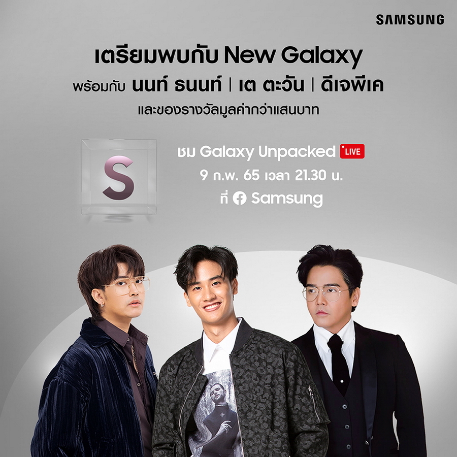 ในงาน Samsung Galaxy Unpacked วันที่ 9 กุมภาพันธ์ 2565 เวลา 21.30 น. เป็นต้นไป ทาง https://www.facebook.com/SamsungThailand สำหรับกาแลคซี่แฟนชาวไทย สามารถลงทะเบียนเพื่อติดตามข้