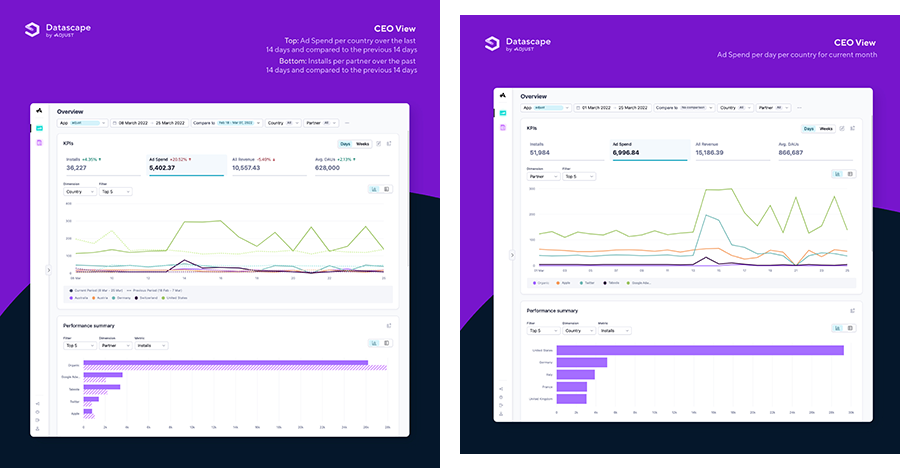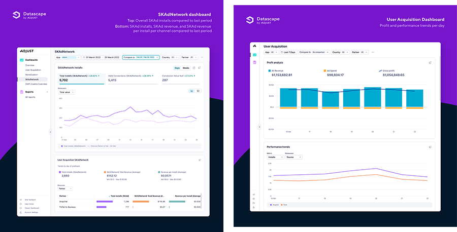 Adjust แพลตฟอร์มการวิเคราะห์การตลาดบนมือถือได้เปิดตัว Adjust Datascape โซลูชั่นใหม่เพื่อการวิเคราะห์ขั้นสูงที่ออกแบบมาเพื่อแสดงผล KPI และตัววัดประสิทธิภาพที่สำคัญต่อธุรกิจได้เร็วและง่ายขึ้น โดยนำเสนอข้อมูลที่รวมกันเป็นหนึ่งเดียวพร้อมบริบทภาพที่ขยายกว้าง นักการตลาดแอปบนมือถือจึงสามารถดึงข้อมูลเชิงลึกที่มีความหมาย และวางแผนการตลาดเชิงกลยุทธ์ได้อย่างชาญฉลาดยิ่งขึ้นในแบบเรียลไทม์