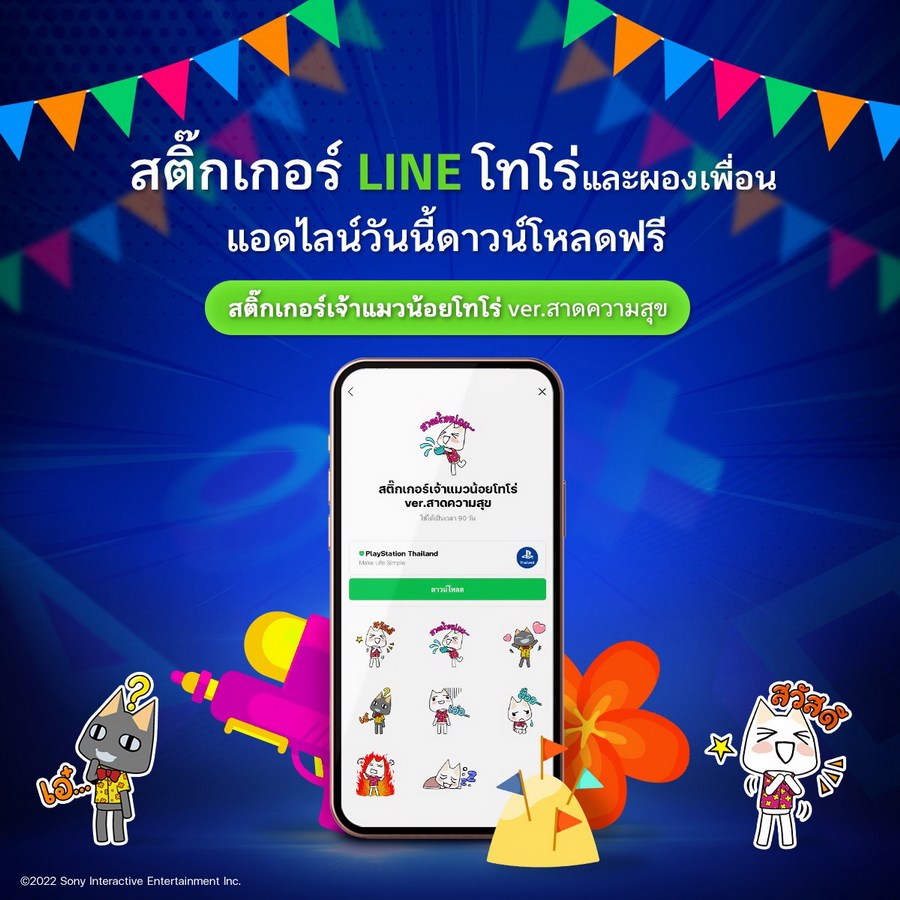 PlayStation Thailand เปิดตัวสติกเกอร์ Line Sticker Official ต้อนรับเทศกาลวันสงกรานต์ โดยนำเสนอความมีชีวิตชีวาผ่านตัวละครมาสคอตของ PlayStation อันเป็นเอกลักษณ์ เพียงแค่เพิ่มเพื่อนกับ Line Official Account: @playstationthai รับฟรี! สติกเกอร์สุดคูล จาก PlayStation ดาวน์โหลดได้ตั้งแต่วันนี้ - 11 พ.ค. 65