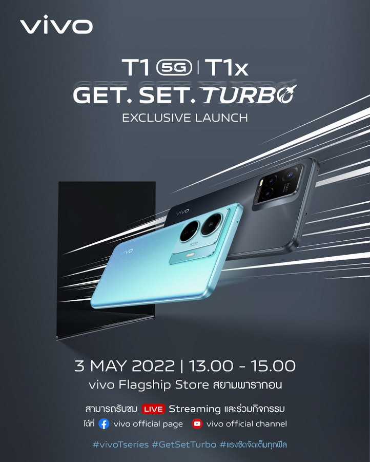 เป็นไปตามคาด vivo ประกาศจัดงานเปิดตัว สมาร์ตโฟน T Series สมาร์ตโฟนเกมมิ่งครั้งแรกของประเทศไทย โดยมีสโลแกน “Get.Set.Turbo แรงชัดจัดเต็มทุกฟีล”