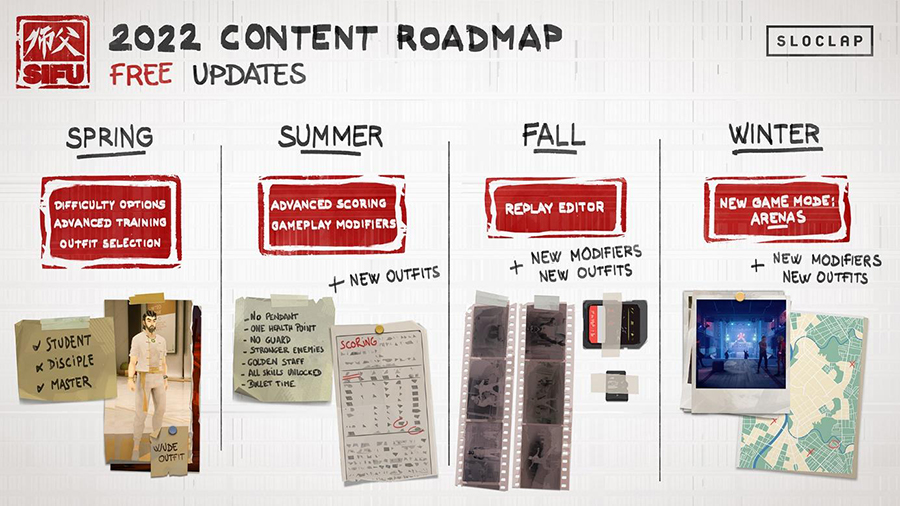 SIFU ในเวอร์ชั่นแผ่นจะได้รับการอัพเดทแรกที่ประกอบไปด้วย Difficulty Modes ใหม่ (Student, Disciple, Master), Advanced Training Mode และชุดตัวละคร Selection of New Outfits สามารตรวจสอบตารางการอัพเดทด้านล่างนี้ได้เลย