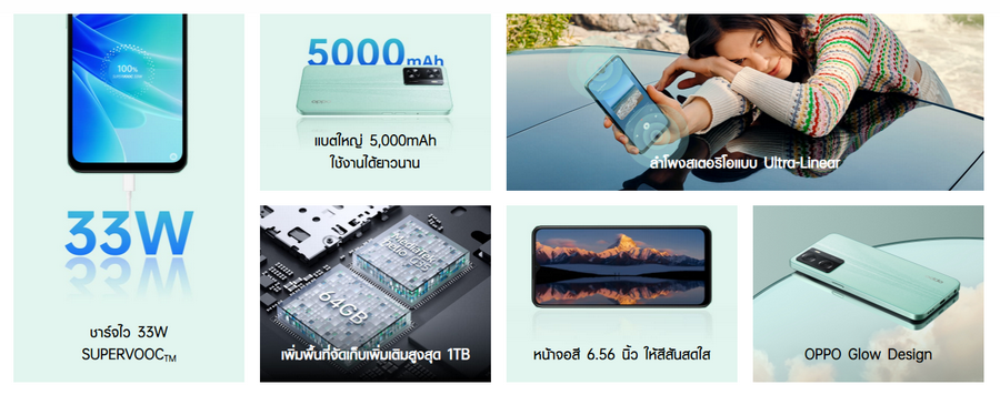 เสริมด้วยแบตเตอรี่ขนาดใหญ่ 5,000mAh และชาร์จไว 33W SUPERVOOC ใช้งานยาวนานตลอดวันไม่มีขาดตอน พร้อมสนุกกับความบันเทิงแบบเต็มอรรถรสด้วยลำโพงสเตอริโอรอบทิศทาง ให้เสียงสมจริง
