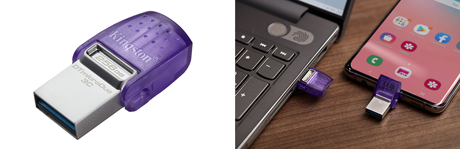 DataTraveler® microDuo™ 3C (DTDUO3CG3) เหมาะสำหรับเพิ่มพื้นที่จัดเก็บให้กับอุปกรณ์เคลื่อนที่ต่าง ๆ โดยมีดูอัลอินเตอร์เฟซที่ใช้งานได้กับทั้งพอร์ต USB Type-C®2 ที่ใหม่กว่าและพอร์ต USB Type-A แบบเดิม ซึ่งสามารถช่วยเพิ่มพื้นที่จัดเก็บได้สูงสุด 256GB ฟอร์มแฟกเตอร์ที่สะดุดตาทำให้สามารถเชื่อมต่อแบบเสียบใช้งานทันทีได้อย่างสะดวก ด้วย USB 3.2 Gen 1 ที่มีความเร็วในการอ่านสูงถึง 200MB/s ช่วยให้ผู้ใช้งานสามารถถ่ายโอนไฟล์ระหว่างสมาร์ตโฟน แท็บเล็ต และคอมพิวเตอร์ได้อย่างรวดเร็ว ไม่ว่าคุณจะอยู่ระหว่างทาง (OTG5) ไปทำงาน เดินทาง หรือเพียงแค่ออกไปถ่ายภาพช่วงเวลาสำคัญ DT microDuo 3C ก็เป็นเพื่อนร่วมทางขนาดกะทัดรัดที่สมบูรณ์แบบ สำหรับการสำรองและจัดเก็บข้อมูลเพิ่มเติม
