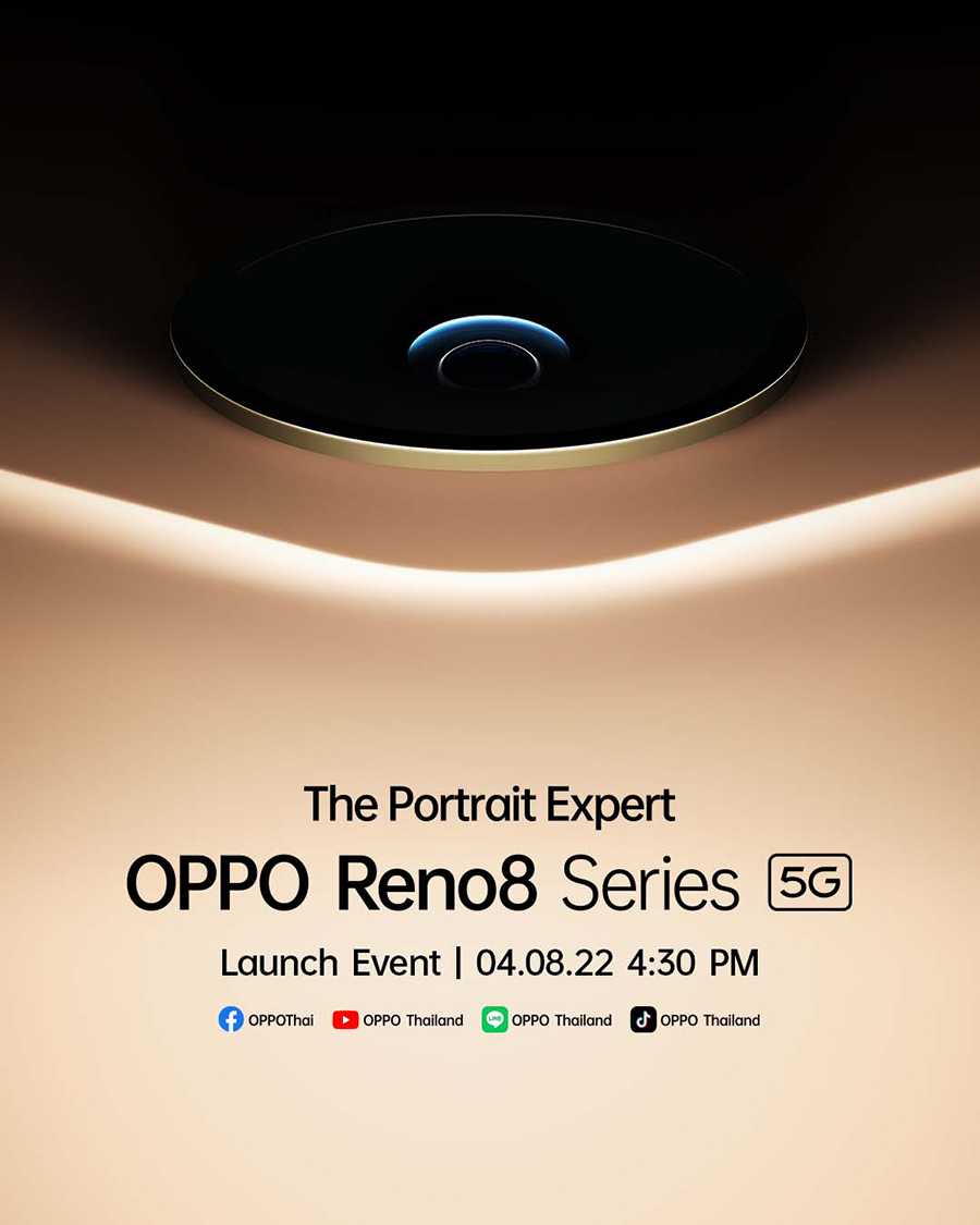โดยภายในงานเปิดตัว ออปโป้ได้เตรียมมอบประสบการณ์พิเศษเพื่อพิสูจน์ให้เห็นถึงประสิทธิภาพเต็มขั้นของสมาร์ตโฟนแห่งยุคที่มอบภาพถ่ายและวิดีโอพอร์ตเทรตได้สวยกว่า เป็นธรรมชาติกว่า และแตกต่างอย่างมีเอกลักษณ์ ให้ประทับใจกับทุกพอร์ตเทรตได้ทุกที่ ทุกเวลา เซอร์ไพรส์ด้วยโชว์พิเศษจาก The Portrait Expert ที่แนะนำว่าห้ามพลาด ร่วมเป็นกลุ่มแรกๆ ที่ได้สัมผัสเทคโนโลยีพอร์ตเทรตระดับโปร และดีไซน์ใหม่อัพเกรด จาก OPPO Reno8 Series 5G ด้วยตัวเอง ในวันพฤหัสบดีที่ 4 สิงหาคมนี้ เวลา 16.30 น. เป็นต้นไป รับชมสดๆ พร้อมกันบน Facebook, YouTube, LINE Official และ TikTok ของ OPPO Thailand เท่านั้น