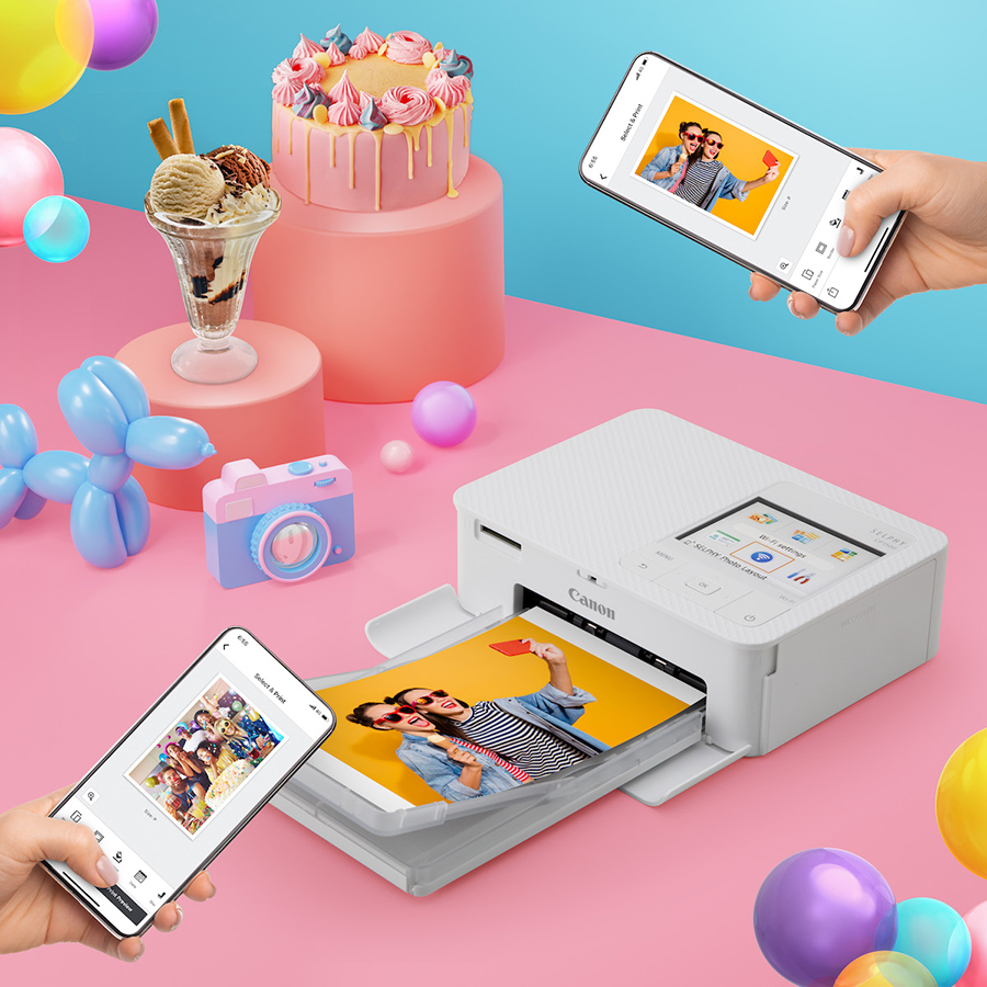 SELPHY CP1500 รองรับการเชื่อมต่อกับสมาร์ทโฟนพร้อมกันได้สูงสุดถึง 8 เครื่อง เป็นตัวเลือกที่เหมาะมากสำหรับการใช้งานร่วมกันที่ปาร์ตี้และงานอีเวนต์ การจับคู่อุปกรณ์ก็ทำได้ง่ายและรวดเร็วเพียงแค่สแกนคิวอาร์โค้ดผ่านแอป SELPHY Photo Layout เพียงเท่านี้ก็สามารถชวนเพื่อน ๆ มาสนุกกับการพิมพ์ได้ทันที