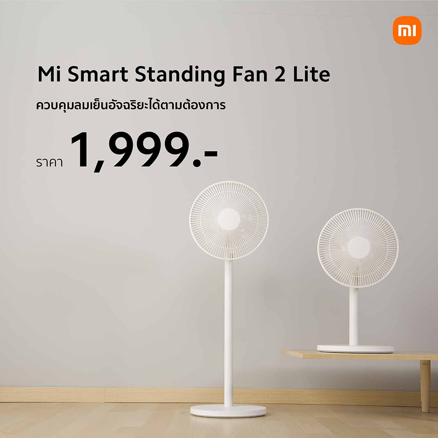 พัดลม Mi Smart Standing Fan 2 Lite วางจำหน่ายในราคา 1,999 บาท ที่ Xiaomi Store และร้านตัวแทนจำหน่ายที่ร่วมรายการ