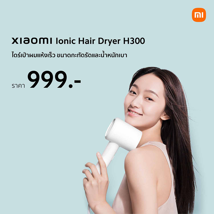 ไดร์เป่าผม Xiaomi Ionic Hair Dryer H300 วางจำหน่ายในราคา 999 บาท ที่ Xiaomi Store และร้านตัวแทนจำหน่ายที่ร่วมรายการ