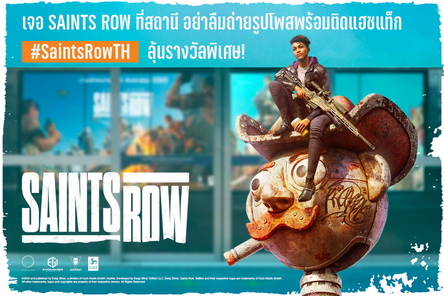 Ripples Asia ร่วมสร้างปรากฏการณ์ครั้งใหญ่ในใจกลางเมืองกับเกมระดับตำนาน Saints Row ณ MRT ทั้ง 18 สถานี ผ่านหน้าจอแสดงผลดิจิตอลกว่า 112 จอ ตั้งแต่วันที่ 16 สิงหาคม - 31 สิงหาคม 2022 นี้ พร้อมให้เหล่าเกมเมอร์ร่วมสนุกกับกิจกรรมถ่ายรูปหน้าจอเกมบนสถานี พร้อมโพสลง Facebook หรือ Twitter แบบสาธารณะ พร้อมติดแฮชแท็ก #SaintsRowTH เพื่อลุ้นรับของรางวัลมากมาย ดังนี้