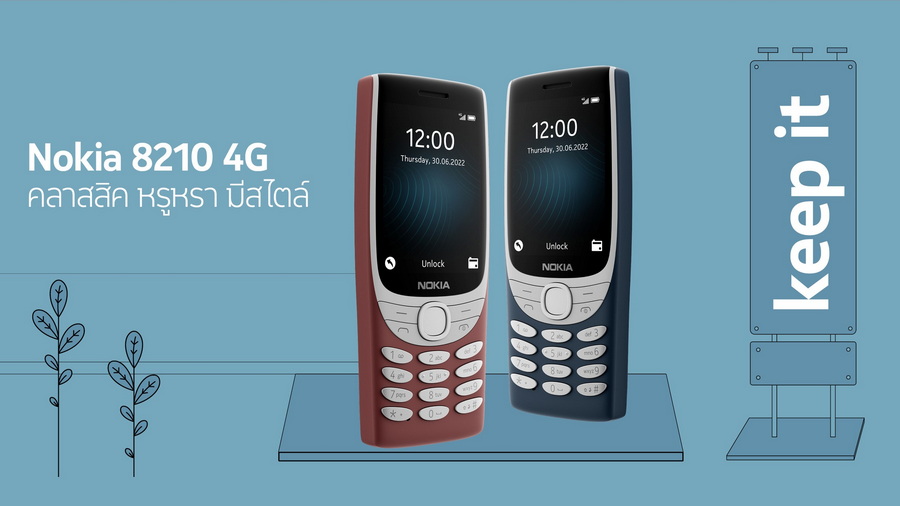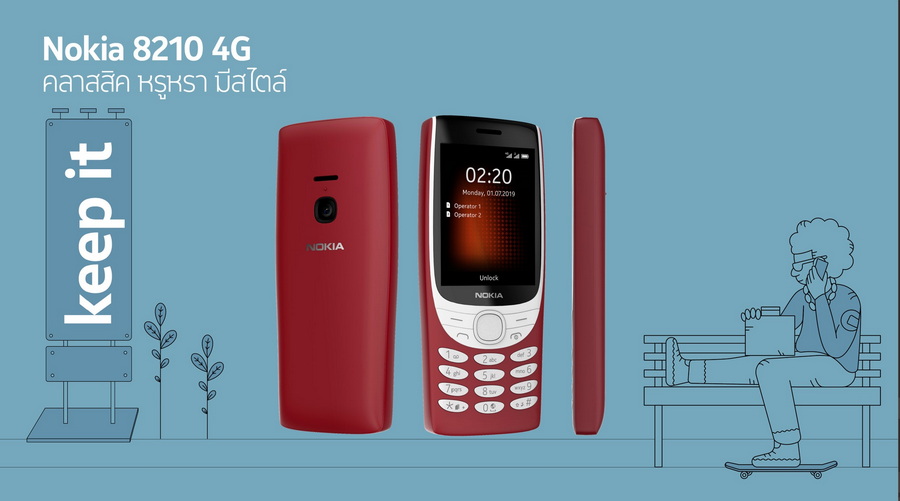 ประเดิมรุ่นแรกด้วย Nokia 8210 4G ฟีเจอร์โฟนทายาทรับไม้ต่อจากรุ่นพี่อย่าง Nokia 8210 รุ่นปี 1999 หรือ พ.ศ. 2542 ในตำนาน มาพร้อมหน้าจอขนาด 2.8 นิ้ว ความละเอียด QVGA กรอบจอแสดงผลที่ปรับปรุงใหม่ ช่วยให้การพูดคุยและการส่งข้อความง่ายขึ้น พร้อมกล้องถ่ายภาพความละเอียด VGA คุณภาพวีดีโอ qVGA ภายในขับเคลื่อนด้วยชิปเซ็ต UniSoc T107 และหน่วยความจำภายในขนาด 48MB+128MB รองรับ MicroSD Card สูงสุด 32GB ทำงานบนระบบปฏิบัติการ S30+OS รองรับเครือข่าย 4G LTE และ Bluetooth 5.0 พร้อมความบันเทิงสุดคลาสสิกกับฟีเจอร์ฟังเพลง MP3 และวิทยุ FM ที่สามารถค้นหาคลื่นผ่านตัวเครื่องได้เลยโดยไม่ต้องใช้หูฟัง ทั้งยังคงเกมงูในตำนานที่แฟนตัวยงพลาดไม่ได้ติดตั้งมาพร้อมกับตัวเครื่อง โดยมีตัวเครื่องให้เลือก 2 สี ได้แก่ สีน้ำเงินเข้ม และสีแดง ในราคา 2,290 บาท”