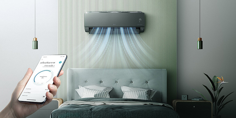 บริษัท แอลจี อีเลคทรอนิคส์ (ประเทศไทย) จำกัด เปิดตัวเครื่องปรับอากาศภายในบ้านรุ่น LG ARTCOOL สีเขียวมหาสมุทร ขับเคลื่อนด้วยระบบ ดูอัล อินเวอร์เตอร์ (Dual Inverter) ประหยัดพลังงานยิ่งขึ้นและทำความเย็นได้เร็วขึ้น โดดเด่นด้านการดูแลสุขภาพสมาชิกในครอบครัวด้วยนวัตกรรมเพื่ออากาศสะอาด เสริมความทนทานเพื่อการใช้งานระยะยาวด้วยแผงคอยล์ร้อนทองแดงแท้และเคลือบสาร Gold Fin ป้องกันสนิมเพิ่มอีกหนึ่งชั้น ตอบสนองการใช้ชีวิตยุคดิจิทัลด้วยการควบคุมผ่านแอปพลิเคชัน LG ThinQ บนสมาร์ทโฟนเชื่อมต่อด้วย WiFi พร้อมผสมผสานสุนทรียภาพทางศิลปะด้วยสีเขียวมหาสมุทร (Deep Green Ocean) เทรนด์สีเขียวแมทท์แบบมินิมอล ซึ่งเป็นสีที่ช่วยปรับสมดุลบรรยากาศภายในบ้านให้ผ่อนคลายและเหมาะแก่การพักผ่อนอีกด้วย