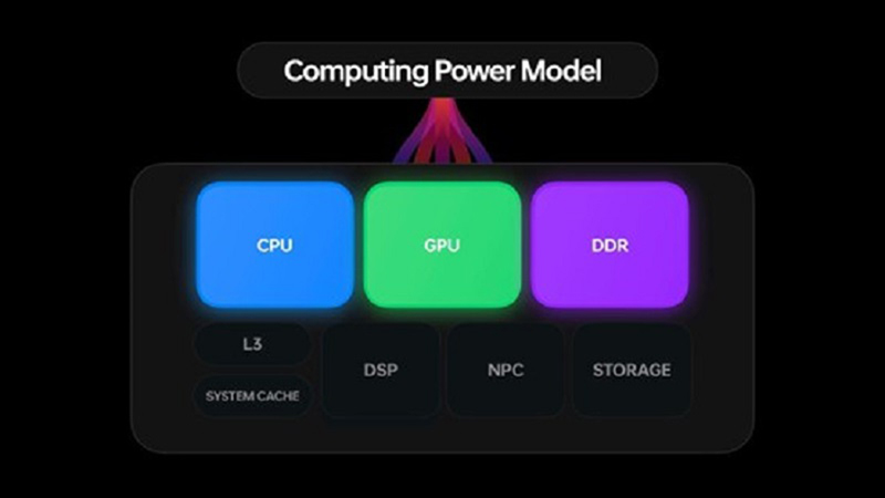 ด้วย Computing Power Model เมื่อใดก็ตามที่โทรศัพท์ต้องการเรนเดอร์ภาพสิ่งแวดล้อมในเกมหรือเปิดแอปพลิเคชันกล้อง CPU จะทำหน้าที่เป็นแค่ "ผู้ช่วย" เท่านั้น โดยจะไม่ทุ่มทรัพยากรไปใช้ในการทำงานนี้ ทำให้สามารถลดการใช้ทรัพยากรที่มากเกินไปและลดความจำเป็นในการทดสอบประสิทธิภาพทรัพยากรซ้ำ ๆ ลดการใช้พลังงานและยืดอายุการใช้งานแบตเตอรี่ได้