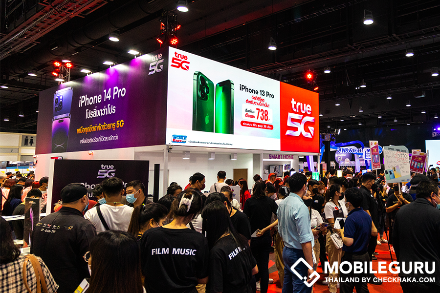เริ่มต้นด้วย บูธ ทรูมูฟ เอช รอบนี้คึกคักมาก นำมาด้วย iPhone 14 Series ที่มีให้เลือกซื้อแทบครบทุกรุ่น แถมยังมีโปรฯ เด็ด ซื้อ 1 แถม 1 พร้อมด้วยผ่อน 0% นานสูงสุด 60 เดือน (โปรดตรวจสอบโปรโมชั่นที่หน้างานอีกครั้ง) ส่วนสมาร์ตโฟนรุ่นอื่น ๆ ก็มีให้เลือกพร้อมของแถมแบบจุก ๆ