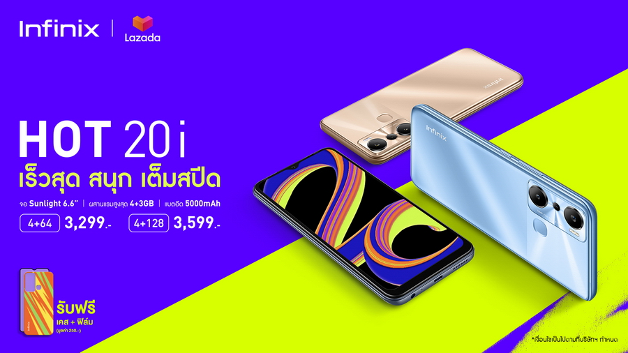 แฟนๆ อินฟินิกซ์สามารถเป็นเจ้าของ Infinix HOT 20 Series ได้ในราคาสุดคุ้มพร้อมของแถมสุดลิมิเต็ดมากมาย จำหน่ายวันแรกวันที่ 7 ตุลาคม 2565 โดยจะมีราคาพิเศษในช่วงเปิดตัวระหว่างวันที่ 7 - 16 ตุลาคม 2565 สำหรับ HOT 20S รุ่น 8+128GB ราคา 5,190 บาท, HOT 20 รุ่น 4+128GB ราคา 4,190 บาท และ HOT 20 รุ่น 6+128GB ราคา 4,690 บาท สั่งซื้อได้ผ่านทางออนไลน์บน Shopee Link: https://bit.ly/3SSwvyW และ HOT 20i รุ่น 4+64GB ราคา 3,299 บาท และ 4+128 GB ราคา 3,599 บาท สั่งซื้อได้ผ่านทาง Lazada Link: https://bit.ly/3SWj9BN ผู้สนใจค้นหารายละเอียดเพิ่มเติมได้ที่ https://www.infinixmobility.com/th