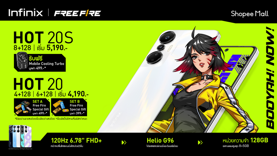 อินฟินิกซ์ (Infinix) แบรนด์สมาร์ตโฟนระดับโลก ตอกย้ำความสำเร็จเดินหน้ารุกตลาดเกมมิ่งและเอนเตอร์เทนเมนต์โฟนอย่างต่อเนื่อง ล่าสุดเปิดตัว Infinix HOT 20 Series อย่างเป็นทางการในประเทศไทย ภายใต้สโลแกน “Booyah Now! - หนึ่งเดียว เพื่อชัยชนะ” ชูจุดเด่นโดนใจผู้ใช้งานด้วยหน้าจอไฮเปอร์วิชั่นเกมมิ่งพร้อมรีเฟรชเรทลื่นไหลที่สุด 120Hz หน้าจอขนาดใหญ่ 6.78 นิ้ว ความละเอียดแบบ FHD+ ผสานพลังกับโปรเซสเซอร์คอเกม MediaTek Helio G96 เปิดตัวในราคา 5,899 บาท โดยร่วมมือกับพันธมิตรชั้นนำอย่าง Free Fire จัดกิจกรรมและคอลเลกชันสุดเอ็กซ์คลูซีฟ ยิ่งไปกว่านั้นยังมีเซอร์ไพรส์ดึงเกิร์ลกรุ๊ปทีป็อปหน้าใหม่มาแรง ‘PiXXiE’ ขึ้นแท่นแบรนด์แอมบาสเดอร์ พร้อมมอบความสนุกสุดฟินด้วยมิวสิกวิดีโอเพลงพิเศษสำหรับมือถือรุ่นใหม่ HOT 20 Series เพื่อถ่ายทอดและสะท้อนให้เห็นถึงความเป็นสมาร์ตโฟนที่ทันสมัยและพร้อมตอบโจทย์ทุกการใช้งานของคนรุ่นใหม่ได้อย่างลงตัว