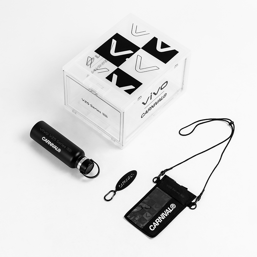 สำหรับความพิเศษในการจับมือกันระหว่าง vivo และ CARNIVAL ในครั้งนี้เป็นการผสานจุดเด่นของทั้งสองแบรนด์ที่เน้นงานดีไซน์อันเป็นเอกลักษณ์เฉพาะเข้าด้วยกันอย่างลงตัว ออกมาเป็น Box Set คอลเล็กชันพิเศษ ซึ่งประกอบด้วย กล่องสำหรับใส่รองเท้าสนีกเกอร์คู่โปรด เพิ่มความคูลด้วยลวดลายรูปตัววี (V) สลับสีขาว-ดำ, กระบอกน้ำเก็บอุณหภูมิสีดำสุดเท่ พร้อมโลโก้ vivo คู่กับ CARNIVAL, กระเป๋าใส่สมาร์ตโฟนขนาดพอเหมาะกับ vivo V25 Series 5G เพิ่มลูกเล่นด้วยตัวอักษรตัววีเช่นเดียวกัน แถมยังโดดเด่นด้วยลายเส้นสีเทาบนพื้นดำ ตัดด้วยตัวอักษรโลโก้แบรนด์ CARNIVAL สีขาวล้วน และพวงกุญแจลาย CARNIVAL ที่มีลูกเล่นคู่กับเทคโนโลยี Color-Changing Glass ของฝาหลังเครื่อง vivo V25 series 5G อีกด้วย