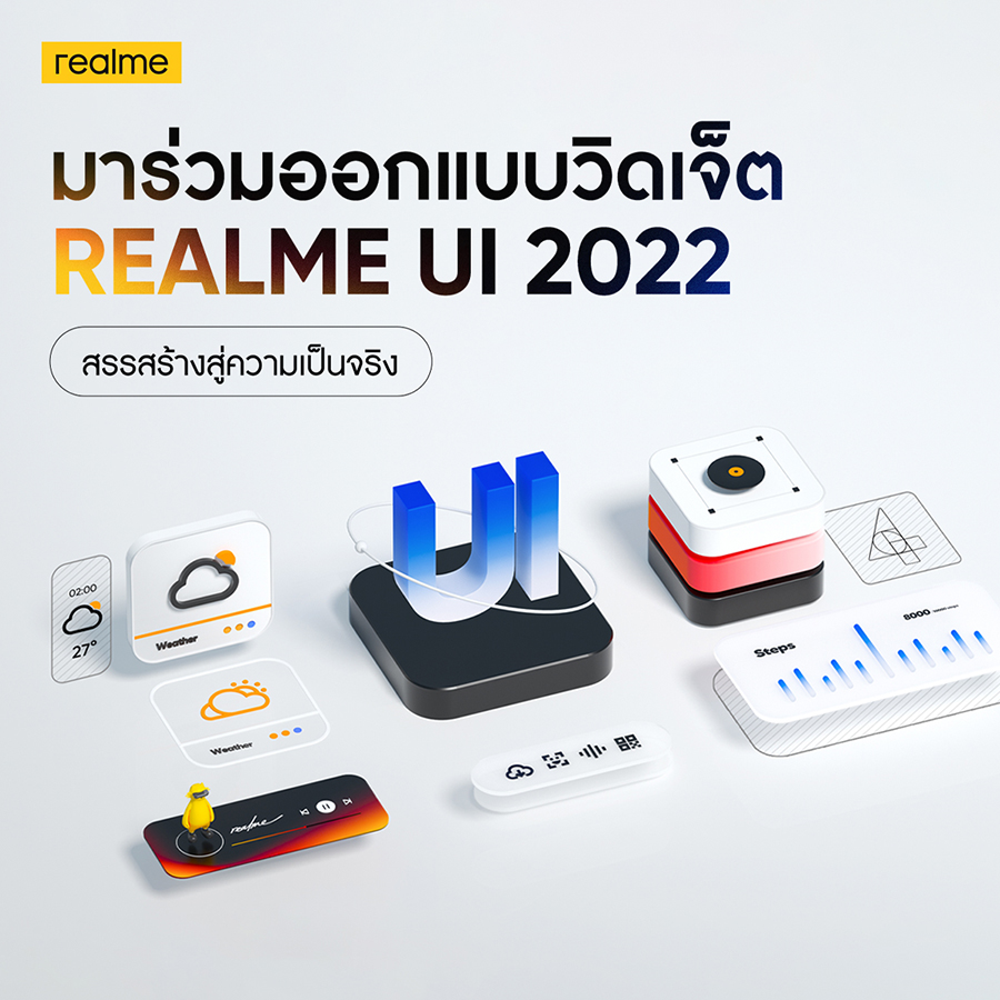 "2022 realme UI Widget Co-Creation Project" ครั้งแรกในเมืองไทย เพื่อเปิดโอกาสให้หนุ่มสาวรุ่นใหม่และผู้ใช้งานทุกคนได้มีส่วนร่วมในการออกแบบ User Interface (UI) ที่ตนเองต้องการสำหรับสมาร์ตโฟนเรียลมีในอนาคต สอดคล้องตามวิสัยทัศน์ของแบรนด์ซึ่งกำหนดให้ผู้ใช้งานเป็นศูนย์กลางการพัฒนาประสบการณ์สมาร์ตโฟนมาอย่างต่อเนื่อง