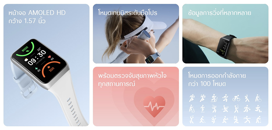 OPPO Band 2 ตอบโจทย์สายคนรักสุขภาพ มาพร้อมฟีเจอร์สุขภาพระดับมืออาชีพด้วยโหมดออกกำลังกายกว่า 100 โหมด และการตรวจจับอัตโนมัติ 4 โหมด เสริมด้วยโหมดออกกำลังกายเฉพาะทางอย่างโหมดเทนนิสมือชีพและฟีเจอร์การวิ่งใหม่ ให้คุณสามารถออกกำลังกายได้อย่างปลอดภัยและเข้าใจระดับทักษะการออกกำลังกายของตัวเองได้ดียิ่งขึ้น และมอบการดูแลสุขภาพรอบด้านด้วยการตรวจวัดอัตราการเต้นของหัวใจตลอดวัน และ Osleep ติดตามการนอนหลับอย่างมืออาชีพ ตรวจวัดค่า SpO2 ออกซิเจนในเลือดอย่างต่อเนื่อง ให้คุณมีสุขภาพดีทั้งกายและใจด้วยการตรวจสอบระดับความเครียดแบบเรียลไทม์พร้อมแสดงคำแนะนำสำหรับการฝึกการหายใจที่เหมาะสมเพื่อช่วยให้คุณผ่อนคลาย