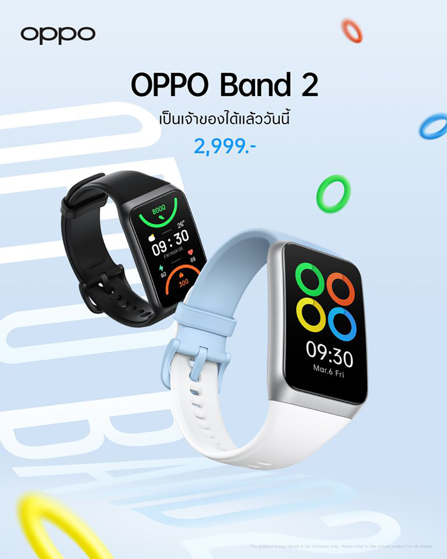 ออปโป้ ไทยแลนด์ แบรนด์อุปกรณ์อัจฉริยะชั้นนำระดับโลก เปิดตัว "OPPO Band 2" สมาร์ตแบนด์ดีไซน์เทรนดี้ ผู้ช่วยในการออกกำลังกายระดับมืออาชีพ พร้อมเป็นคู่หูในชีวิตสมาร์ตไลฟ์ มาพร้อมดีไซน์สวยทันสมัย หน้าจอขนาดใหญ่ ถูกใจสายแฟชั่น และใช้งานได้ยาวนาน ในราคา 2,999 บาท เท่านั้น