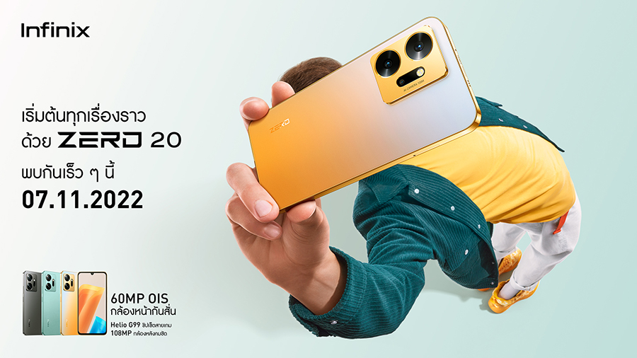 แฟนๆ อินฟินิกซ์ห้ามพลาด! เตรียมพบกับ Infinix ZERO 20 พร้อมเปิดตัวและประกาศราคาในประเทศไทยอย่างเป็นทางการวันที่ 7 พฤศจิกายน 2565 และจะวางจำหน่ายแบบ Online Exclusive ที่ร้าน Infinix Official Store บน Shopee เริ่มวันแรกตั้งแต่วันที่ 8 พฤศจิกายน 2565 เป็นต้นไป ด้วยราคาสุดคุ้มไม่เกิน 8,000 บาท