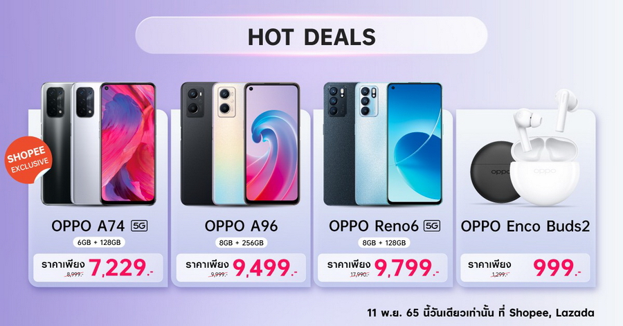 พลาดไม่ได้! 11.11 นี้เตรียมตัวให้พร้อม แล้วมาช้อปสมาร์ตโฟนและอุปกรณ์ IoT จาก OPPO ในราคาสุดพิเศษ พร้อมรับของสมนาคุณมากมายที่ OPPO 11.11 Big Deal Ever เฉพาะวันที่ 11 พฤศจิกายน 2565 วันเดียวเท่านั้น ที่ OPPO Official Store บน Shopee และ Lazada