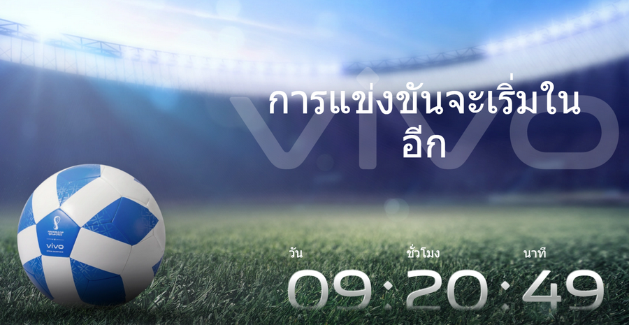 เตรียมเคาท์ดาวน์นับถอยหลังสู่เกมลูกหนังระดับโลกที่ทุกคนรอคอย vivo แบรนด์สมาร์ตโฟนชั้นนำระดับโลก ประกาศร่วมเป็นสปอนเซอร์ศึกฟุตบอลโลก FIFA World Cup Qatar 2022TM อย่างเป็นทางการ ชวนแฟนบอลชาวไทยเกาะติดขอบสนาม ส่งเสียงเชียร์และร่วมลุ้นไปกับแมตช์การแข่งขันสุดมันส์ที่กำลังจะเปิดฉากขึ้น ตั้งแต่วันที่ 20 พฤศจิกายน ถึง 18 ธันวาคมนี้ ณ ประเทศกาตาร์ พร้อมร่วมโมเมนต์ระดับโลกกับนักเตะทีมโปรดได้ทุกที่ ไม่ว่าจะอยู่ที่ไหนก็ไม่พลาดชอตเด็ดสำคัญ!