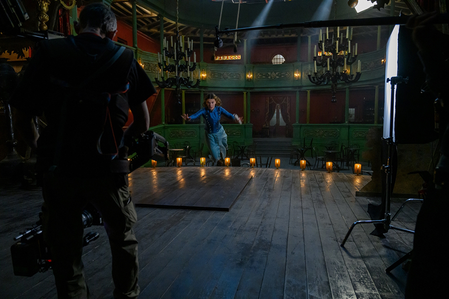 การแสดงนอกเหนือบทบาทสามารถปลดล็อกการแสดงอันน่าทึ่งที่เราคาดไม่ถึงจากนักแสดงได้จริงๆ แม้แต่ในเรื่อง Enola Holmes 2 เองก็เช่นกัน ฉากในหอแสดงดนตรีพารากอน (The Paragon Music Hall) มิลลี บ็อบบี บราวน์ ไม่ได้อ่านบทสำหรับฉากนี้เลย และไม่แม้แต่เข้ามาซ้อมก่อนถ่ายทำจริง เพื่อที่เธอจะได้เข้ามาในหอแสดงดนตรีแบบที่เอโนลาทำ จึงทำให้ฉากนี้ดูสมจริงและปราศจากการคิดไว้ก่อนล่วงหน้า "มันยอดเยี่ยมไปเลย" มิลลี บ็อบบี บราวน์ กล่าว "เราใช้ Steadicam ในการจับภาพใบหน้าของเอโนลา เนื่องจากตอนที่เธอเข้ามาในพารากอนและเดินผ่านตัวละครมากมายที่แฮร์รี่ได้วางไว้ในฉาก และฉันเองก็ไม่รู้เลยว่าพวกเขาเหล่านั้นจะมีรูปร่างหน้าตาอย่างไรหรือพวกเขาจะพูดอะไรกับฉันบ้าง สีหน้าที่แสดงถึงความประหลาดใจของฉันมันออกมาจากใจจริงๆ เพราะเขาเหล่านั้นช่างแปลกประหลาด ไม่เหมือนใคร และมีสีสัน"