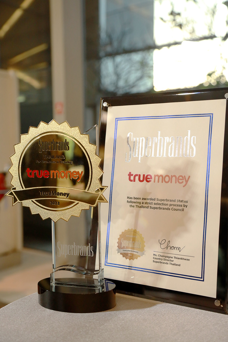 ทรูมันนี่ (TrueMoney) ผู้นำด้านบริการอิเล็กทรอนิกส์เพย์เมนท์และผู้ให้บริการทางการเงินชั้นนำในภูมิภาคเอเชียตะวันออกเฉียงใต้ คว้ารางวัล "Superbrands Thailand 2022" หรือ สุดยอดแบรนด์ชั้นนำของประเทศไทย ประจำปี 2565 จากผลสำรวจซุปเปอร์แบรนด์ทั่วประเทศ ด้วยหลักเกณฑ์การคัดเลือกด้านคุณภาพ เอกลักษณ์ และความสัมพันธ์ระหว่างแบรนด์กับผู้บริโภค ตอกย้ำความสำเร็จของทรูมันนี่ในฐานะผู้นำแอปพลิเคชันบริการทางด้านการเงินที่หลากหลาย ผ่านกระเป๋าสตางค์อิเล็กทรอนิกส์ที่ใช้งานง่าย และสามารถตอบโจทย์ได้ทุกไลฟ์สไตล์