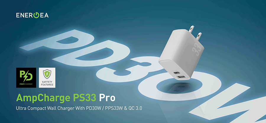 ส่วน AmpCharge PS33 Pro เป็นหัวชาร์จตัวเล็กแบบพอร์ตคู่ USB-C และ USB-A ที่สามารถรองรับการชาร์จไฟได้ครอบคลุมหลากหลายอุปกรณ์ ด้วยเทคโนโลยีชาร์จเร็วแบบจัดเต็มที่มีทั้ง PD/PPS, QC3.0, SCP จ่ายไฟสูงสุด 33 วัตต์ ชาร์จได้หลายอุปกรณ์ ไม่ว่าจะเป็น MacBook Air, iPhone, Galaxy Note, Huawei Mate, Xiaomi และอุปกรณ์อื่นๆ ที่รองรับ มาพร้อมขนาดที่เล็กกะทัดรัดกว่าหัวชาร์จทั่วไป 20% ปลอดภัยด้วยระบบ Safety Features และระบบ Auto-detect devices power โดย Energea หัวชาร์จ Wall Charger Dual USB-C PD30W/PPS33W & USB-A QC3.0 รุ่น Ampcharge PS33 Pro วางจำหน่ายในราคา 990 บาท