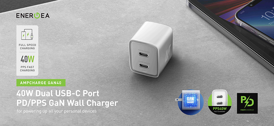 สำหรับ AmpCharge GaN40+ เป็นหัวชาร์จเทคโนโลยี GaN จ่ายไฟสูงสุด 40W ขนาดเล็กลงกว่าหัวชาร์จทั่วไปถึง 30% น้ำหนักเบาเพียง 80 กรัมเท่านั้น มาพร้อม USB-C PD/PPS 2 พอร์ต ชาร์จเร็วได้ 2 อุปกรณ์พร้อมๆ กัน โดยให้พลังการชาร์จอยู่ที่พอร์ตละ 20W สามารถชาร์จ MacBook Air และ ชาร์จ iPad, iPhone รวมถึงอุปกรณ์ Android ที่รองรับได้อย่างรวดเร็ว ปลอดภัยด้วยระบบ Safety Features และระบบ Auto-detect devices power โดย Energea หัวชาร์จ Wall Charger Dual USB-C Port PD/PPS 40W รุ่น Ampcharge GaN40+ วางจำหน่ายในราคา 1,590 บาท