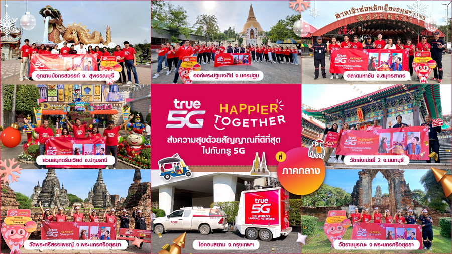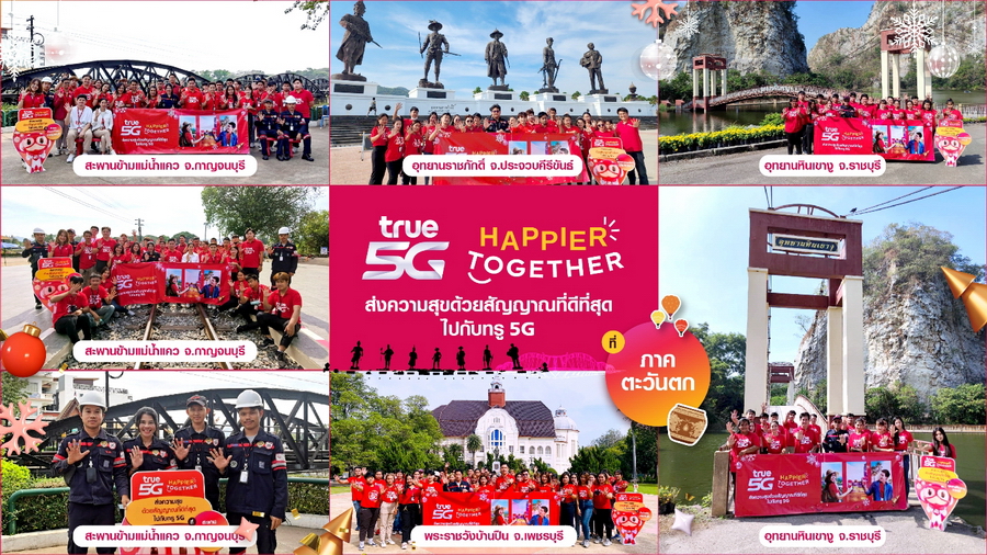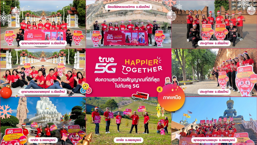 ช่วงเวลาส่งท้ายปีเก่าต้อนรับปีใหม่นี้ .. ทรูชวน HAPPIER TOGETHER สุขกว่าทุกวัน ด้วยกันกับทรู เช็คอินเดสติเนชั่น สถานที่ท่องเที่ยวยอดฮิต และจุดแลนด์มาร์คสำคัญทั่วไทย ตั้งแต่เหนือจรดใต้ ด้วยเครือข่ายอัจฉริยะ ทรู 5G เร็ว แรง ครอบคลุม 77 จังหวัด ให้คนไทยทุกภูมิภาคมั่นใจ สุขทุกวันด้วยกันทั่วไทย เคาท์ดาวน์แบบหมดห่วง อัปโซเชียล เล่นเน็ตเร็วแรงได้ไม่อั้น ในทุกพื้นที่ ซึ่งปีนี้ ทรู 5G จัดเต็มด้านการสื่อสารทั้งโทรและเน็ต ด้วยสัญญาณ 4G/5G/WiFi
