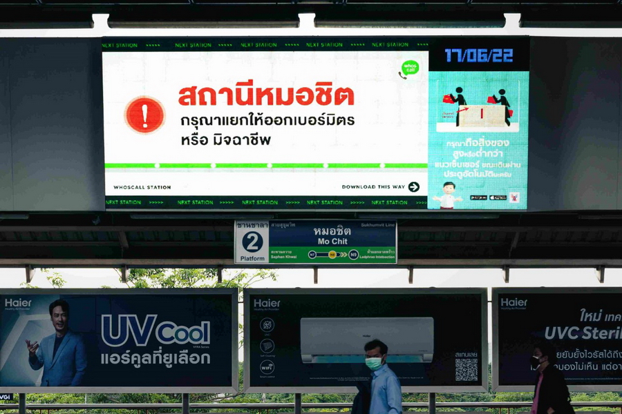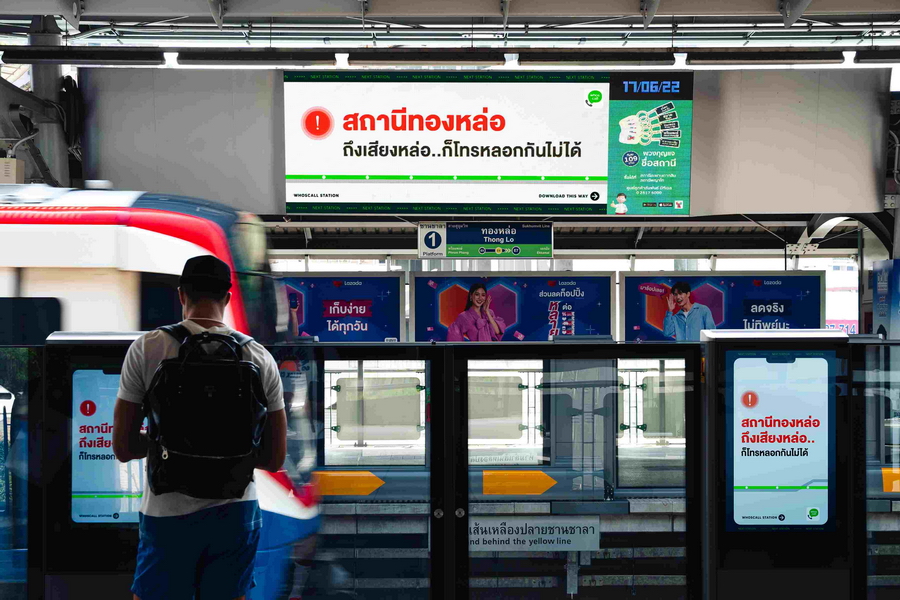 แคมเปญ “Whoscall The Safety Station” ชูกลยุทธ์การสื่อสารการตลาดสุดสตั๊นท์เอาให้งงกันทั้งสถานีรถไฟฟ้าบีทีเอส (BTS) เมื่อเป้าคือการเตือนให้คนไทยรู้เท่าทันมิจฉาชีพ Whoscall ได้เปลี่ยนเสียงประกาศแจ้งสถานีที่คุ้นเคยให้เป็นเสียงประกาศเวอร์ชั่นใหม่ที่สะดุดหูเตือนผู้โดยสารให้ระวังมิจฉาชีพ ซึ่งเสียงประกาศของแต่ละสถานีและป้ายดิจิทัลบนชานชาลายังเปลี่ยนตามโลเคชั่นจริงไม่ซ้ำกัน ทั้งหมด 24 สถานีทั่วกรุงเทพฯ เพื่อผสมผสานให้เข้ากับไลฟ์สไตล์ของชาวไทย เช่น “รถไฟขบวนนี้สายสุขุมวิท สถานีต่อไป อาจเป็น…สายมิจฉาชีพ โปรดสังเกตเบอร์ก่อนรับสายว่าใครโทรมา” “สถานีต่อไปหมอชิตกรุณาแยกให้ออกเบอร์มิตรหรือเบอร์มิจฉาชีพ” “สถานีสนามกีฬาแห่งชาติ ทั้งชาติจะปลอดภัยจากแก๊งค์คอลเซ็นเตอร์”