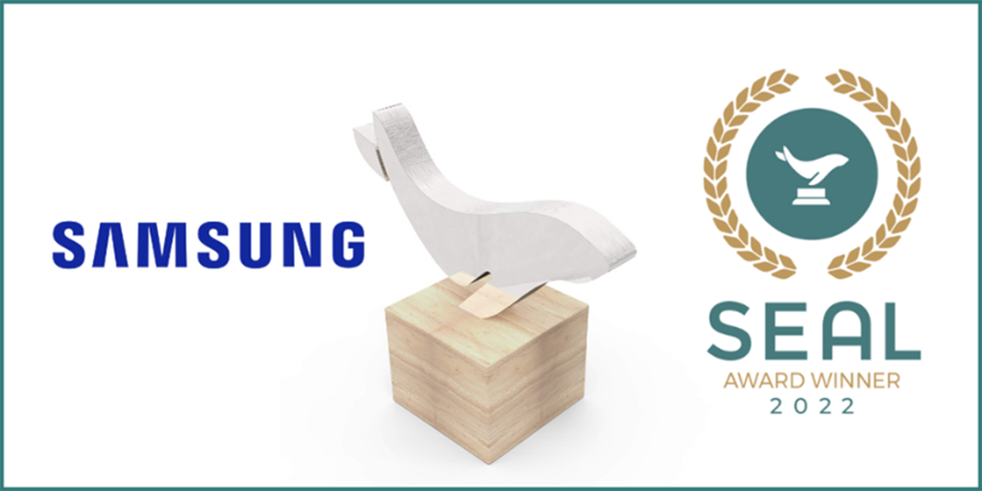 งาน SEAL Awards เป็นงานประกาศรางวัลซึ่งได้จัดขึ้นเป็นประจำทุกปี เพื่อเป็นการยกย่องโครงการและองค์กรชั้นนำทั่วโลกในการสร้างการขับเคลื่อนด้านสิ่งแวดล้อมให้เกิดความก้าวหน้าอย่างยั่งยืน โดยมีคณะกรรมการตัดสินที่เป็นผู้เชี่ยวชาญด้านการพัฒนาที่คำนึงถึงความรับผิดชอบ 3 ด้านหลัก คือ สิ่งแวดล้อม สังคม การกำกับดูแล (ESG) โดยซัมซุงได้รับการตัดสินให้เป็นผู้ชนะเลิศและได้รับรางวัลในสาขา SEAL Sustainable Product Award ซึ่งเป็นรางวัลที่เชิดชูผลิตภัณฑ์ที่สร้างด้วยแรงบันดาลใจในการขับเคลื่อนและสร้างการเปลี่ยนแปลงโลกไปในทิศทางที่ดียิ่งขึ้น