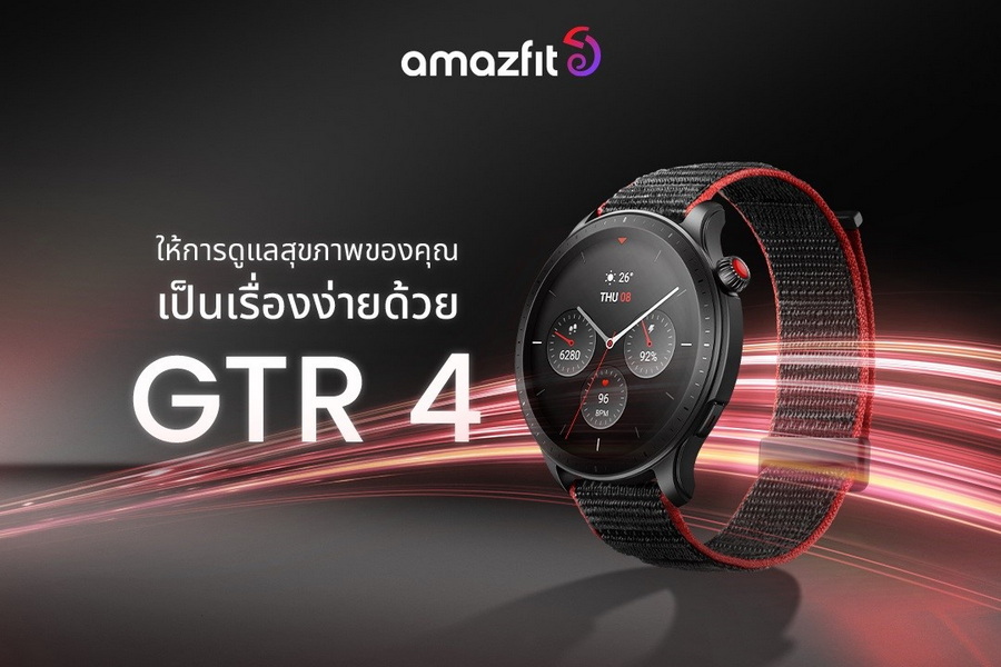 Amazfit GTR 4 สมาร์ทวอทช์พรีเมี่ยม ที่ได้รับแรงบันดาลใจจากความทันสมัยของรถสปอร์ต มาพร้อมดีไซน์หน้าจอขนาด 1.43 นิ้ว แบบ HD AMOLED ที่มีให้เลือกกว่า 200 แบบพร้อมจอแสดงผลแบบเปิดตลอดเวลา และแบตเตอรี่ที่ทรงพลังสามารถใช้งานทั่วไปได้นาน 14 วัน ตัวเรือนได้รับการออกแบบด้วยโลหะ มีปุ่มด้านข้างและเม็ดมะยมทางด้านขวาเพื่อการควบคุมหน้าจอแทนการสัมผัส โดยมีให้เลือก 3 สี คือ Superspeed Black, Vintage Brown Leather และ Racetrack Grey มีฟังก์ชัน ติดตามข้อมูลด้านสุขภาพ ด้วยการตั้งค่าให้แจ้งเตือนเมื่อผิดปกติ เช่น อัตราการเต้นของหัวใจสูงหรือต่ำ, ระดับค่าความอิ่มตัวของออกซิเจนในเลือดต่ำ และระดับความเครียดสูง โดยแจ้งเตือนให้ออกกำลังกาย เพื่อลดความเครียด