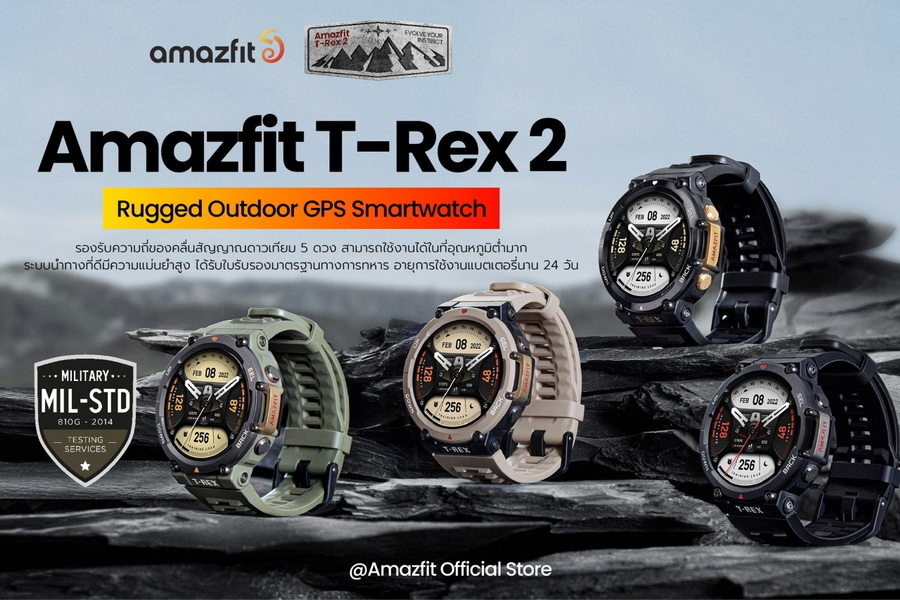 Amazfit T-Rex 2 สมาร์ทวอทช์ที่มีความโดดเด่นในหลายฟังก์ชั่น ประกอบด้วย ฟังก์ชั่น OxygenBeats™ การวัดอัตราการเต้นของหัวใจ ที่ทำให้เราสามารถกำหนดระยะเวลาในการออกกำลังกายในระดับที่เหมาะสม หรือการวัดค่า SpO2 สามารถวัดความเข้มข้นของออกซิเจนในเลือด ซึ่งทำได้บ่อยครั้งเท่าที่ต้องการเพื่อปรับปรุงผลลัพธ์ให้ดีขึ้นและยังสามารถวัดค่าแคลอรี่ที่เผาผลาญในทุกกิจกรรม, VO2max, รวมถึง GPS Built-in ที่เชื่อมต่อดาวเทียมนำทาง ตัวเครื่องทนทานเพราะทำจากโลหะคุณภาพสูง กันน้ำได้ระดับ 10ATM อีกทั้งในเรื่องของแบตเตอรี่ที่มีความอึดถึง 18 วัน ทำให้มั่นใจสำหรับการทำกิจกรรมท้าทายกลางแจ้งได้อย่างดีเยี่ยม และยังมีโหมดกีฬากว่า 100 โหมด รองรับความต้องการของแฟนพันธ์แท้สายกีฬาได้อย่างดีที่สุด