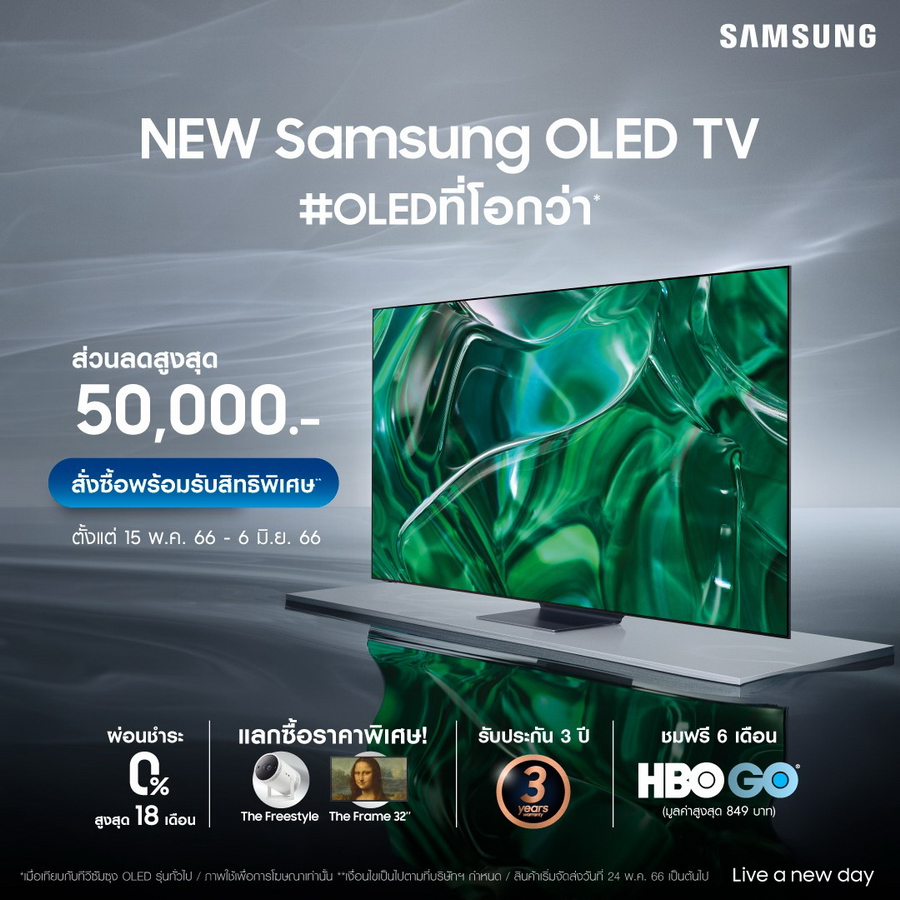 ซัมซุงมอบทางเลือกให้ผู้บริโภคตลาดทีวีพรีเมียมมากขึ้นด้วยการสัมผัสประสบการณ์การรับชมแบบ #OLEDที่โอกว่ากับ New Samsung OLED TV พบโปรโมชั่นพิเศษ Early Order ตั้งแต่วันที่ 15 พฤษภาคม – 6 มิถุนายน 2566 เท่านั้น ทาง
