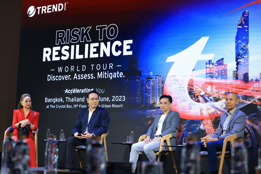 ภายในงาน Trend Micro Risk to Resilience World Tour ที่ผ่านมาได้มีการจัด Panel Discussion: RISK TO RESILIENCE : Discover. Assess. Mitigate. เชิญ 3 ผู้เชี่ยวชาญจาก 3 หน่วยงาน ได้แก่ คุณชัชวัฒน์ อัศวรักวงศ์ กรรมการผู้จัดการ และประธานเจ้าหน้าที่บริหารด้านความมั่นคงปลอดภัยเทคโนโลยีสารสนเทศ (CISO) กสิกร บิซิเนส-เทคโนโลยี กรุ๊ป (KBTG) คุณอนุชิต ชื่นชมภู รองกรรมการผู้จัดการใหญ่ ด้านธุรกิจบริการดิจิทัล สายงานธุรกิจบริการดิจิทัล บริษัท ไปรษณีย์ไทย จำกัด และ พ.ต.อ.กฤษณะ พัฒนเจริญ โฆษก กองบัญชาการตำรวจสืบสวนสอบสวนอาชญากรรมทางเทคโนโลยี (บช.สอท.)