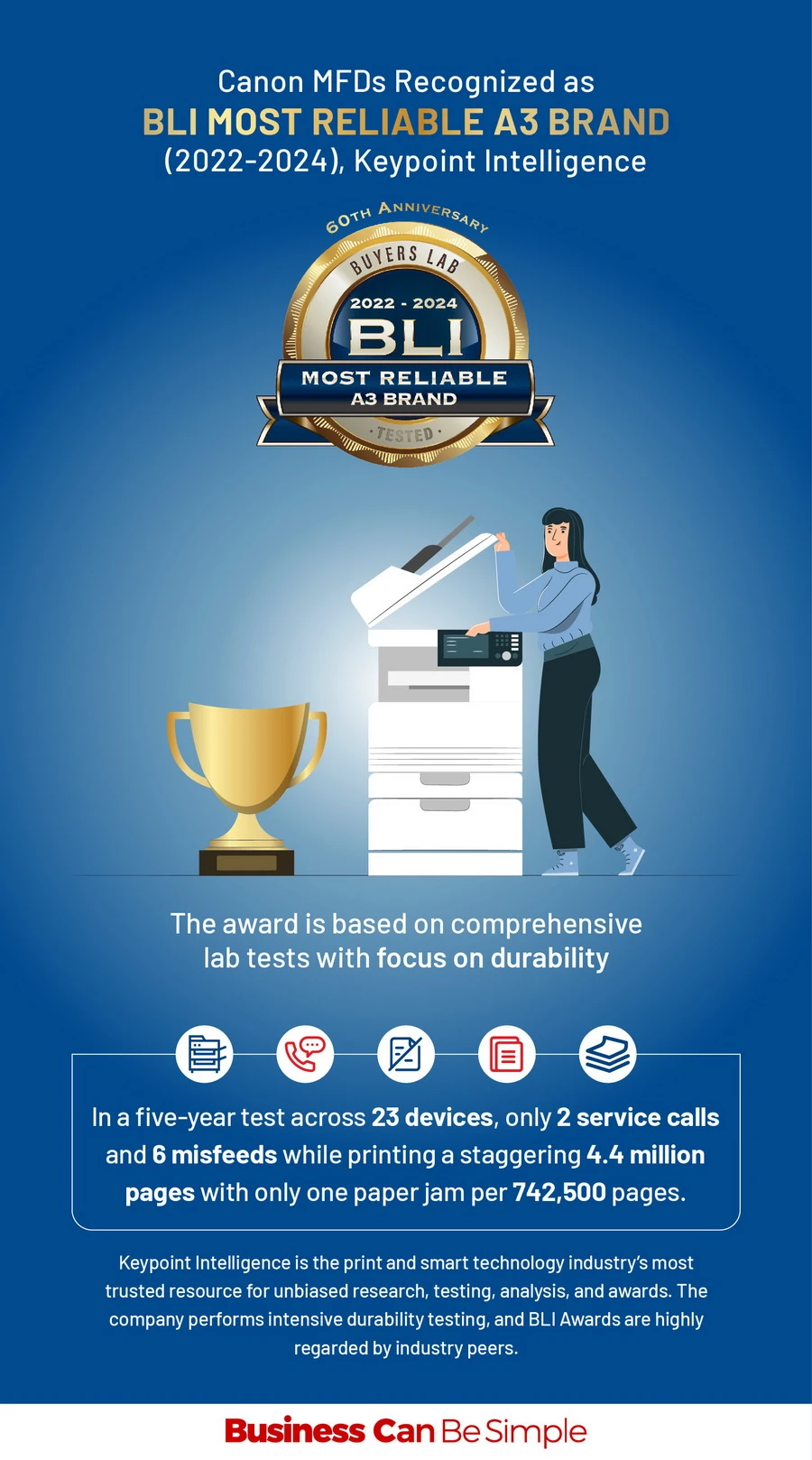 - เครื่องถ่ายเอกสารมัลติฟังก์ชั่นของแคนนอน ได้รับรางวัล "BLI Awards - Most Reliable A3 Brand" ในฐานะเครื่องถ่ายเอกสารคุณภาพสูงที่น่าเชื่อถือที่สุดพร้อมการทำงานที่ลื่นไหลและระบบอัจฉริยะที่ลดการพิมพ์ผิดพลาดและปัญหากระดาษติดขัดได้อย่างมีประสิทธิภาพ