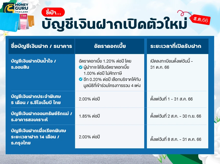 ระยะเวลาที่เปิดรับฝาก : ตั้งแต่วันที่ 1 - 31 สิงหาคม 2566