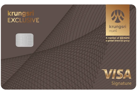 บัตรเครดิต กรุงศรีเอ็กซ์คลูซีฟ ซิกเนเจอร์ : บัตรเครดิตที่ช่วยยกระดับความสุขของคุณได้ง่ายๆ มีความโดดเด่นในเรื่องของการเดินทาง สามารถอัปเกรดบัตรโดยสารได้ เข้าห้องพักรับรองที่สนามบินได้ แถมยังมีบริการรถรับส่งสนามบินอีกด้วยนะคะ ส่วนในเรื่องของการใช้จ่ายกับยังสามารถรับส่วนลด และเครดิตเงินคืนอย่างคุ้มค่าสุดๆ