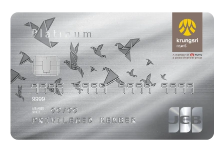 บัตรเครดิต กรุงศรี เจซีบี แพลทินัม : เป็นบัตรเครดิตที่ถูกนิยามไว้ว่า "ไปให้สุด...ไม่หยุดใช้ชีวิต" เพียงแค่มีบัตรเครดิตใบนี้ ก็จะทำให้เราเพลิดเพลินกับการท่องเที่ยวต่างประเทศแบบคุ้มค่า คุ้มราคา กิน เที่ยว ใช้จ่ายอย่างสบายใจ รับเครดิตเงินคืนกันแบบจุกๆ แถมยังคุ้มครองความเสียหายจากการซื้อสินค้าออนไลน์อีกด้วยค่ะ