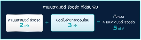 *ยอดใช้จ่ายออนไลน์ 10,000 บาท จะได้รับคะแนนสะสมซิตี้ รีวอร์ด ทั้งหมด 2,000 คะแนน