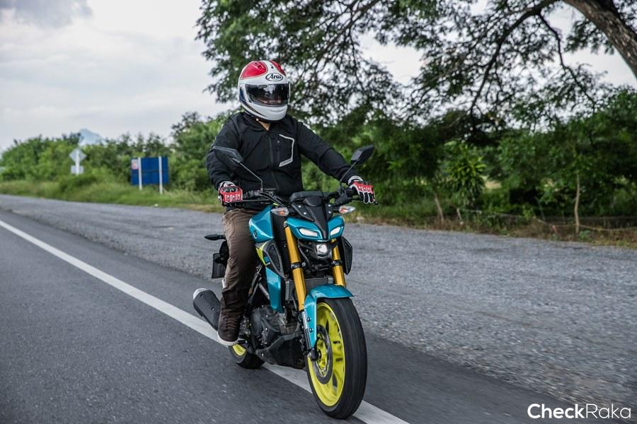 ในช่วงเดินทางกลับได้สลับมาขี่ Yamaha MT-15 ที่มีความแตกต่างกันพอสมควรกับคาร์แร็คเตอร์ที่ดุดันตั้งแต่เสียงท่อที่ดังได้อารมณ์สปอร์ต อัตราเร่งตอบสนองเร็วทันใจ ระบบเกียร์เข้าได้นุ่มนวล เรียกว่าต้นจัดจ้านปลายไหล ส่วนท่านั่งขับขี่นับว่าสบายกว่าด้วยระยะแฮนด์สั้นแต่ยกสูงและเบาะที่ได้ระดับพอดีตัว ทำให้หลังตรงมากกว่าไม่ต้องเอนไปด้านหน้านัก แต่ว่าตัวเบาะรองนั่งแข็งและมีขนาดเล็กไปหน่อย ตัวมาตรวัดแบบสปอร์ตที่มีความสว่างมองชัดเจนกว่า แต่ในส่วนของการใช้งานสวิตช์บนแฮนด์จะไม่ถนัดนัก ต้องปรับตัวสักพักใหญ่ ช่วงล่างที่เน้นความสปอร์ตจึงให้ความหนึบมาเป็นพิเศษ จึงมีอาการกระเด้งบ้างเมื่อผ่านถนนคอนกรีตที่มีลอนคลื่น