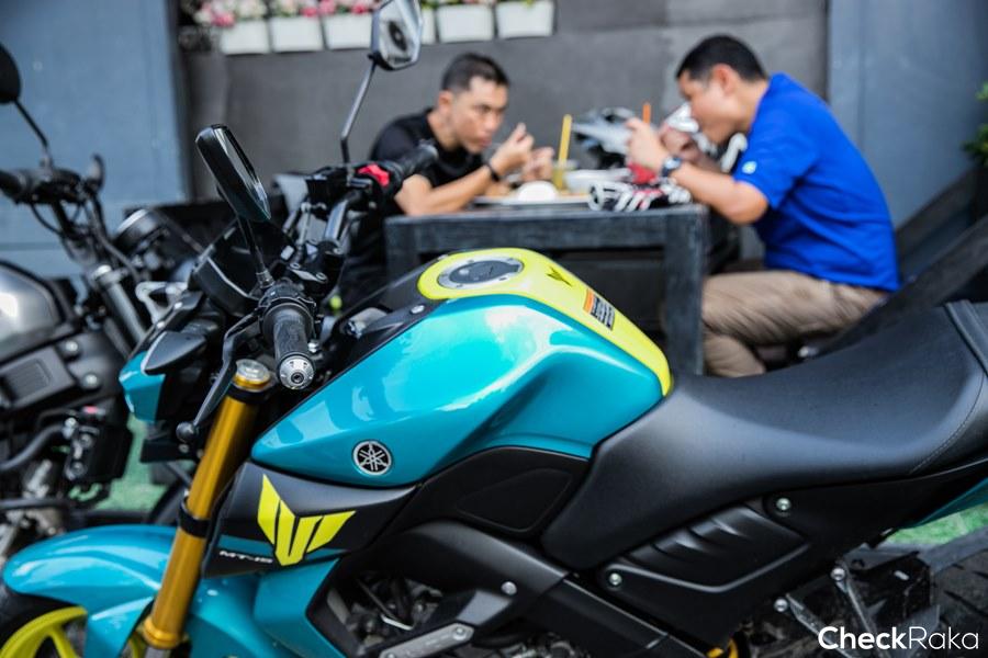 สำหรับแอดบอมที่ขี่ MT-15 พบว่าการขี่ทางไกลกับรถคลาส 155 ซีซี VVA ที่ใช้ความเร็วในการเดินทางสูงสุดอยู่ไม่เกิน 120 กม./ชม. ให้ความคล่องตัวอย่างมากเวลาเจอสภาพการจราจรหนาแน่น เช่น ช่วงในเมือง, ช่วงซ่อมถนนที่มีการลดช่องทางเดินรถ ฯลฯ การขี่ด้วยความเร็วเดินทาง 80-120 กม./ชม. ทำได้สบายๆ การเร่งแซงรถช้าได้พลังจากระบบวาล์วแปรผันเสริมดันผ่านได้ตามที่คิด ระบบเบรกชะลอรถรองรับความเร็วการเดินทางได้ดี ส่วนหนึ่งก็พยายามรักษาความเร็วให้เหมาะสมกับสภาพแวดล้อมในแต่ละเส้นทาง ตลอดระยะทางที่ขี่มา เพื่อความปลอดภัยสูงสุด อย่างไรก็ตามเมื่อมาถึงร้านดัลลัสฯ จุดนัดหมายแรก หลังพักเช็คอินจิบกาแฟและเปลี่ยนข้อมูลการขี่พร้อมเตรียมสลับรถเพื่อเดินทางไปร้านสหายคาเฟ่ จังหวัดลพบุรี อันเป็นจุดหมายต่อไปนั้น ฝนก็กระหน่ำลงมาทำให้การขี่อีก 42 กม. มีความท้าทายมากขึ้น ด้วยสภาพถนนที่เปียกลื่น