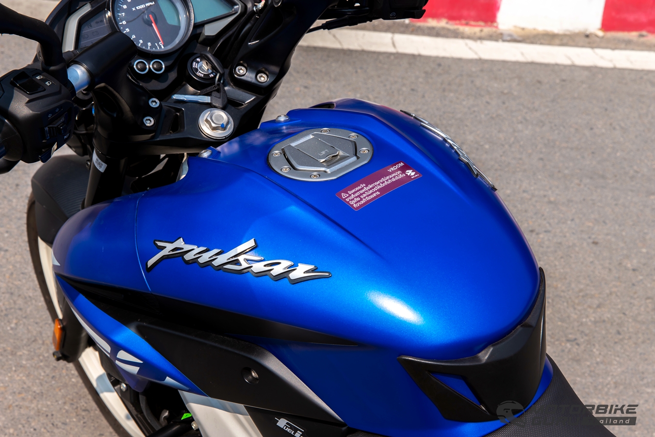 Bajaj Pulsar NS200 ใหม่ เป็นมอเตอร์ไซค์ สปอร์ตเนกเก็ตที่ให้ความคุ้มค่าและน่าใช้ในระดับราคารถเกียร์ไม่เกิน 100,000 บาท ซึ่งเจ้าตลาดหลายรุ่นต่างมีราคามากกว่า 9 แสนบาท เฟิร์สลุคทันทีที่ไปรับรถสีน้ำเงินตัดเฟรมเพอริมิเตอร์ขาวคันนี้ ให้อารมณ์แตกต่างจาก Dominar 400 ที่เคยขี่ทดสอบมา