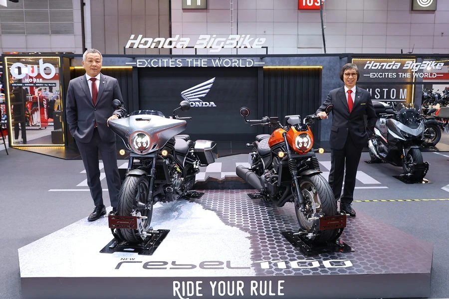 ไฮไลต์สำคัญกับการเปิดตัวรถจักรยานยนต์ฮอนด้าเอาใจสายคัสตอมบ๊อบเบอร์อย่าง New Honda Rebel1100 ที่พลิกนิยามการขับขี่บทใหม่ ภายใต้คอนเซปต์ “Ride Your Rule” เติมเต็มความเร้าใจด้วยดีไซน์ใหม่และเทคโนโลยีล้ำสมัย มาพร้อมหน้าจอแสดงผล TFT ขนาด 5 นิ้ว แสดงข้อมูลครบครัน เชื่อมต่อระบบ Honda RoadSync อัดแน่นทุกฟังก์ชัน รองรับโหมดการขับขี่ 4 โหมด สั่งการง่าย ไม่ต้องละสายตาจากถนน เสริมประสบการณ์ที่เร้าใจกว่าด้วยเทคโนโลยี Honda Dual Clutch Transmission (DCT) เจเนอเรชันใหม่ เปลี่ยนเกียร์ได้อย่างลื่นไหลไม่มีสะดุด